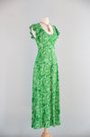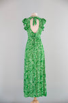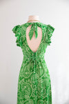 Whimsical 1970's Fern Green Open Back Maxi Dress / SM