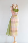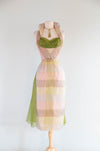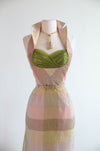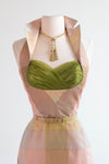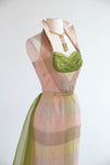 Fabulous 1950's Pastel Plaid Silk Halter Dress By Beaumelle / Sm