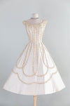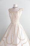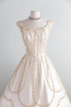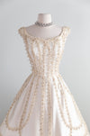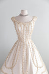 Exquisite 1950’s Ivory Satin Party Dress by Ceil Chapman / M