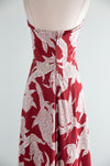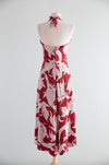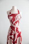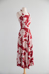 Glamorous 1940's Kamehameha Hawaiian Print Halter Dress In Cold Rayon / SM