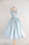 Dreamy 1950's Crystal Blue Satin Party Dress By Emma Domb / XS