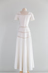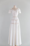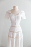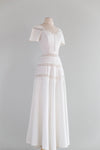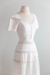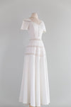 The Sweetest 1940's Cotton Pique Wedding Gown With Lace Insets & Full Skirt / SM