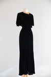 Elegant 1930's Black Silk Velvet Bias Cut Evening Gown / SM