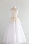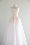 Enchanting Vintage Princess Wedding Gown With Sparkling Pearls & Tulle / M