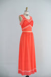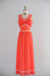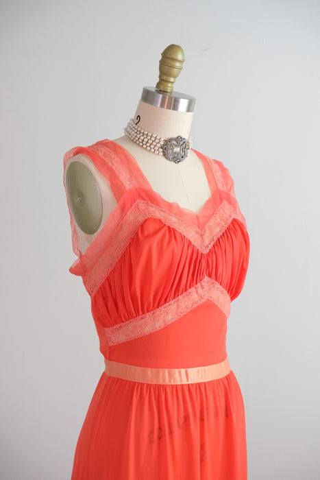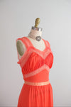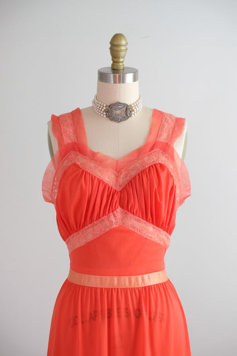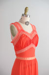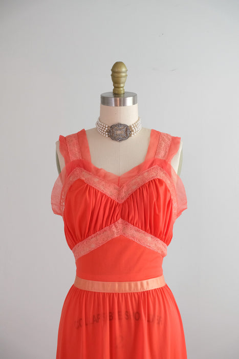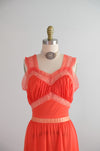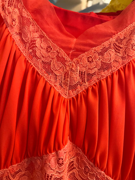 Vintage 1950's Poppy Red Nylon & Lace Slip Gown / XS