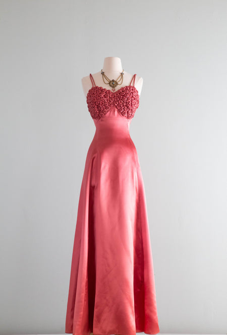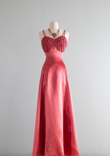 Gleaming 1930's Liquid Slipper Satin Evening Gown in Sunset Rose / Medium