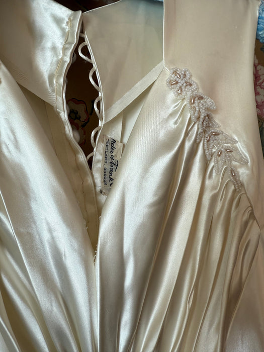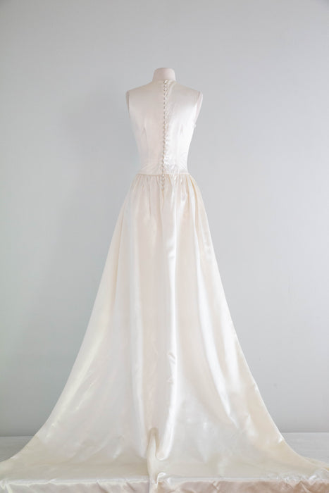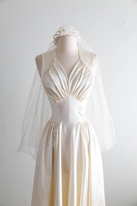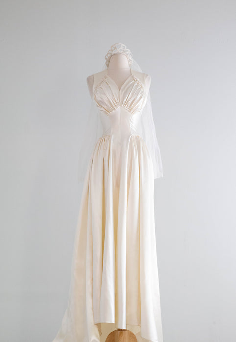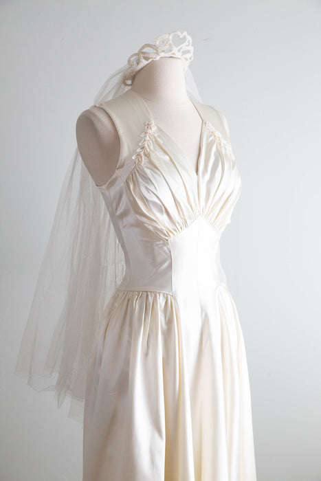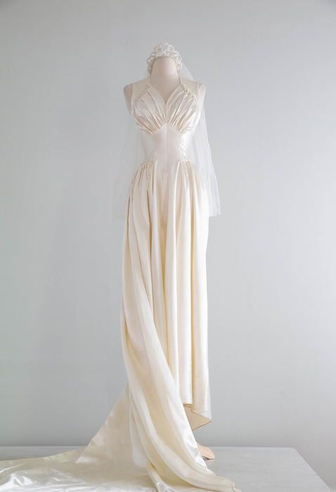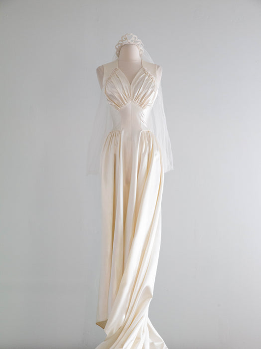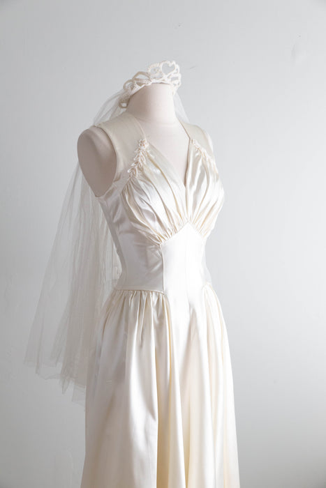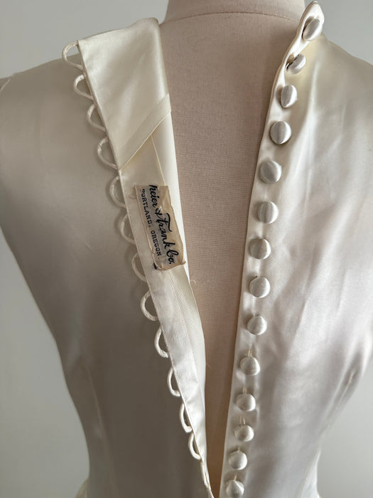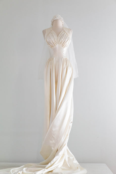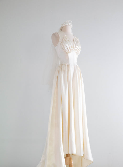 Gorgeous 1940's Gleaming Ivory Slipper Satin Wedding Gown From Meier & Frank / S