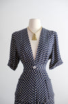 Vintage 1940's Navy & White Polka Dot Ensemble / M