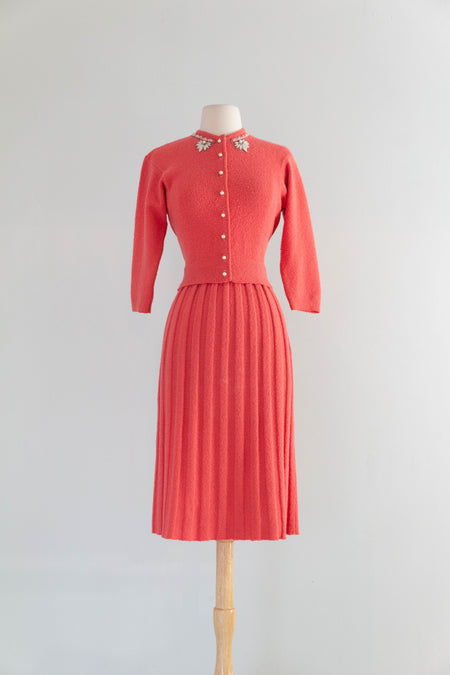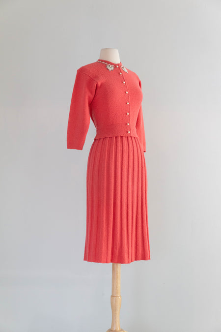 Sold Out Lovely 1950's Larry Aldrich Pink Linen Summer Occasion Dress With Matching Jacket / SM $198.00