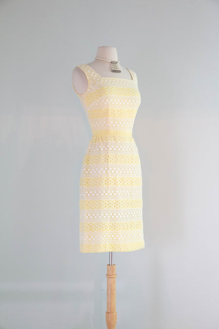 Sold Out Elegant 1960's Moygashel Linen Shift Dress With Embroidered Floral Applique / Medium $148.00