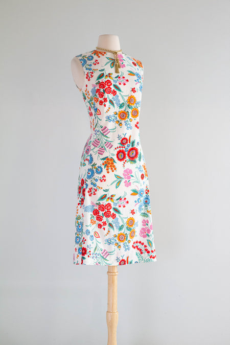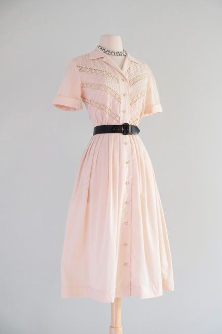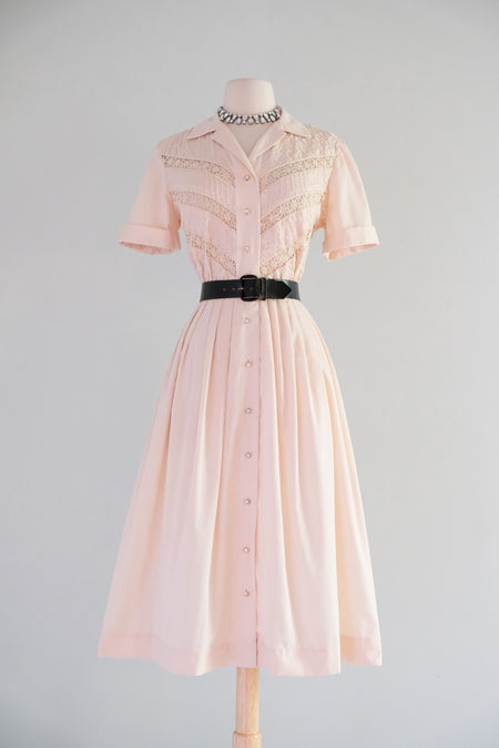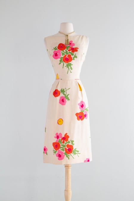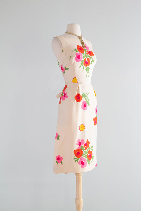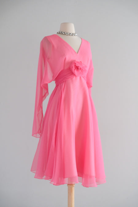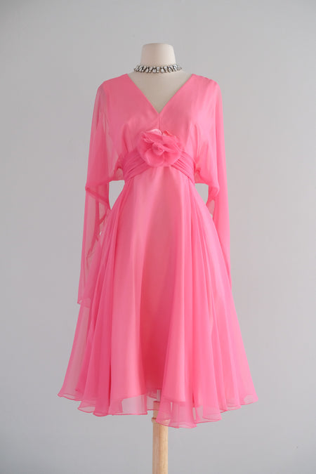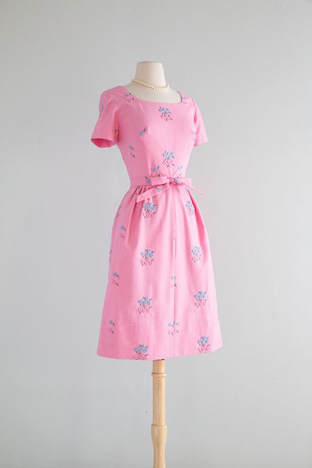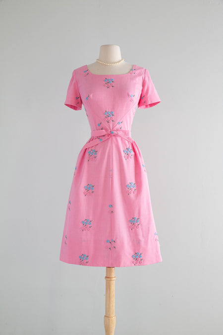 Sold Out Adorable 1960's Barbie Pink Cotton Dress With Embroidered Three Dimensional Flowers / M $148.00