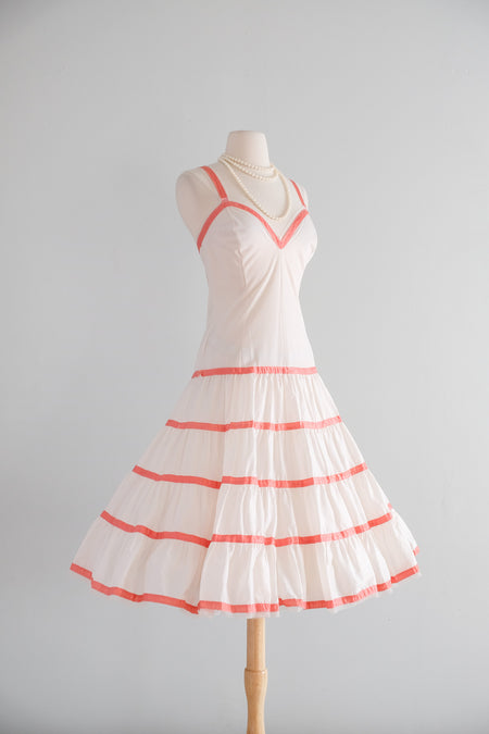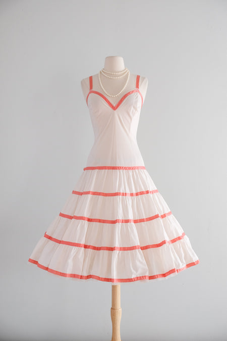 Vintage 1950's Ivory & Coral Tiered Slip Dress by Laros / M