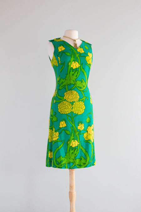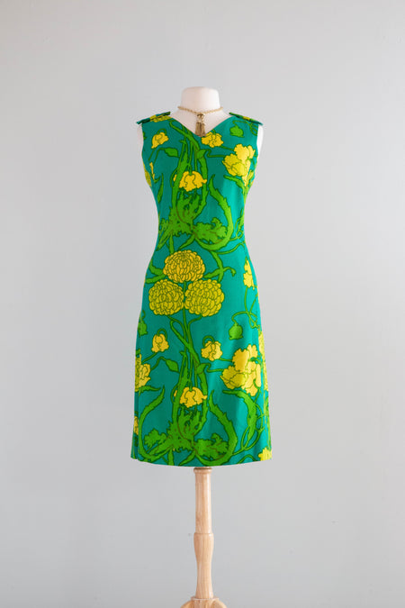 Rare 1960's Lilly Pulitzer Spring Green & Yellow Mum Print Shift Dress / ML