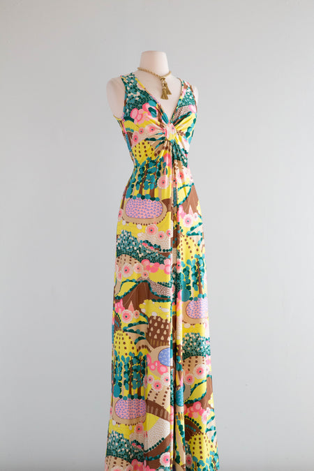 Fabulous 1970's Robert-David Morton Magical Novelty Print Maxi Dress / SM