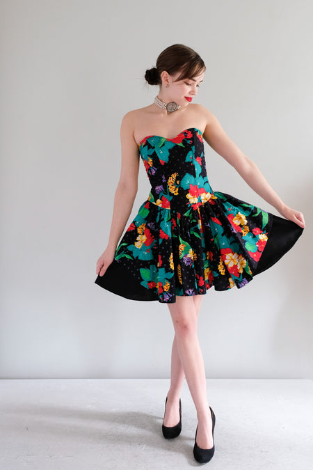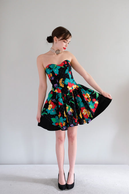 Vintage 1980's Strapless Floral Cotton Dress by Be Smart / XS