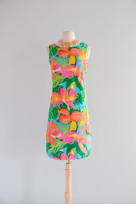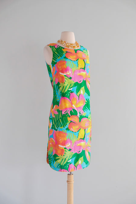 Vintage 1960's Bright Tropical Island Shift Dress / S
