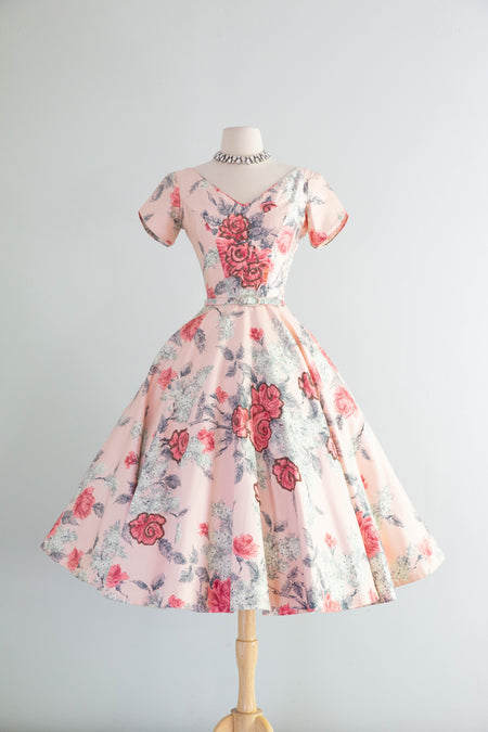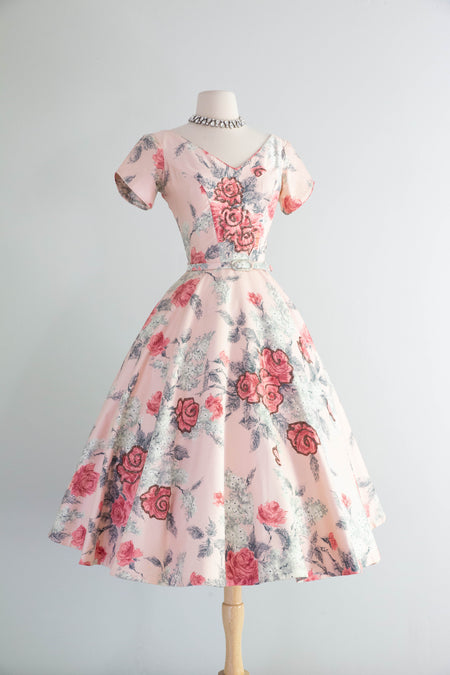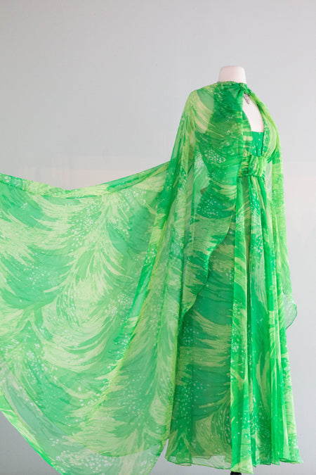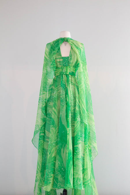 Divine Early 1940's Black Silk Rose Print Evening Gown With Matching Shawl / M