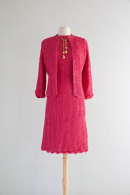 Beautiful 1960's I.Magnin Jade Green Crochet Dress With Pockets / M