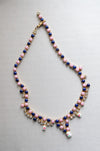 Romantic 1950's Contrast Lavender & Navy Rhinestone Necklace