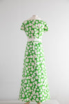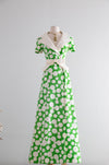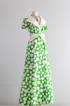Fabulous 1960's Malcolm Starr By Rizkallah Green & White Polka Dot Maxi Dress / M