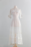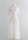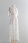 Exquistie Rose Embroidered 1900's Edwardian Cotton Wedding Dress / XS