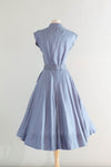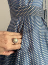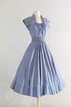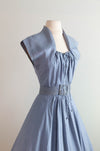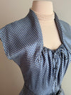 Rare Early 1950's New Look Era Blue Silk Polka Dot Dress Designed By Jacques Fath for Joseph Halpert / Small