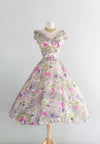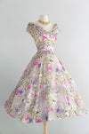 Ethereal 1950's Paper Silk Summer Floral Print Party Dress / Small