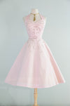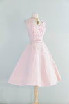 Beautiful 1950's Pale Pink Cotton Embellished Summer Dress By Carl Naftal / S