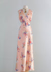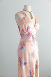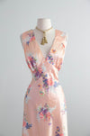 Dreamy 1940's Bias Cut Peach Satin Slip Dress With Floral Print By Corticelli / ML