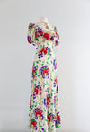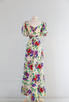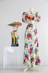 Gorgeous 1930's Floral Print Silk Bias Cut Garden Party Gown / SM