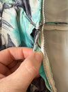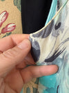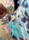 Elegant 1950's Aquamarine & Charcoal Silk Rose Print Cocktail Dress / M