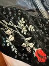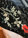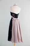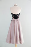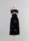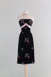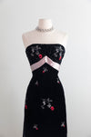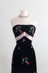 Iconic 1950's Cocktail Dress By Emma Domb With Embroidered Roses on Black Velvet / Small