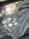 Pristine 100% silk bias cut nightgown with asymmetrical bodice, pin tuck pleats, and low back. Spaghetti straps with a criss cross back. Slips on over the head and feels like heaven on the body. From Capriotti's and made in Hong Kong. In excellent condition, freshly dry cleaned and ready to wear.