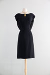 Elegant Early 1960's Little Black Cocktail Dress With Glamorous Back & Bow / M