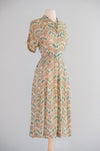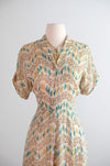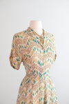 Vintage 1940's Teal & Honey Bemberg Rayon Day Dress by Pam Paterson / M