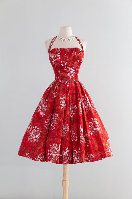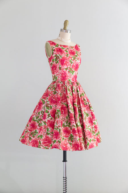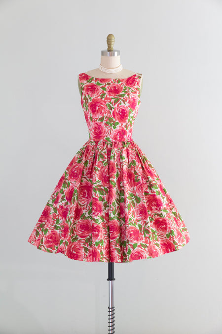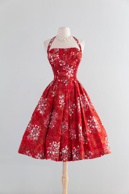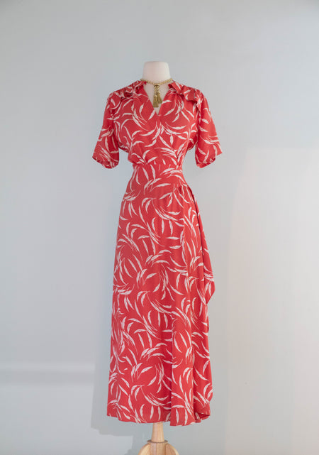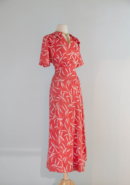 Sold Out Exquisite 1930's Summer Floral Print Bias Cut Formal Gown With Deco Rhinestone Buttons / M $725.00