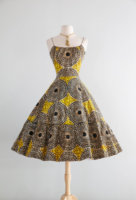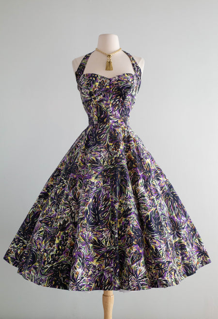 Sold Out Gorgeous 1950's Dark Tropical Hawaiian Halter Neck Cotton Sundress With Matching Jacket / Medium $348.00