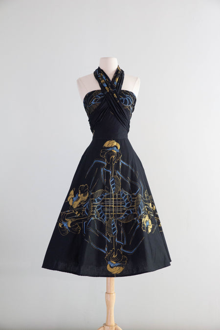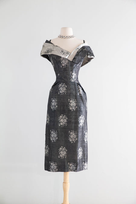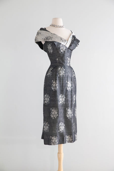 Sold Out Glamorous Late 50's Silk Chiffon Cocktail Dress In An Abstract Blue Watercolor Print / M $198.00