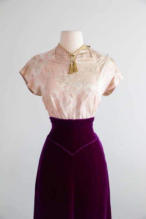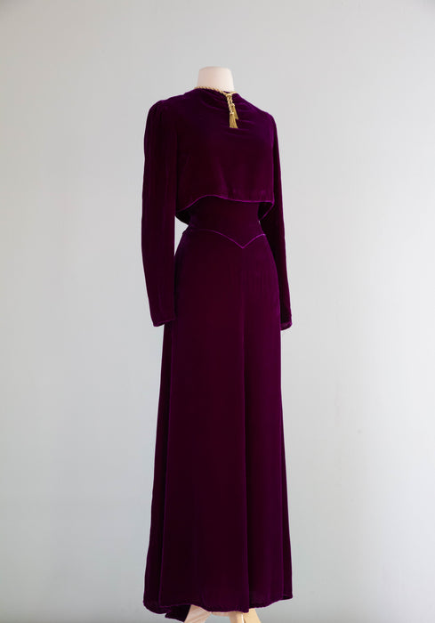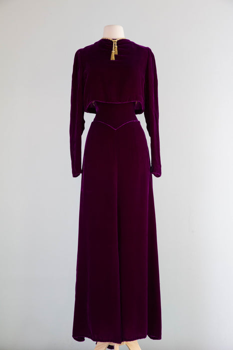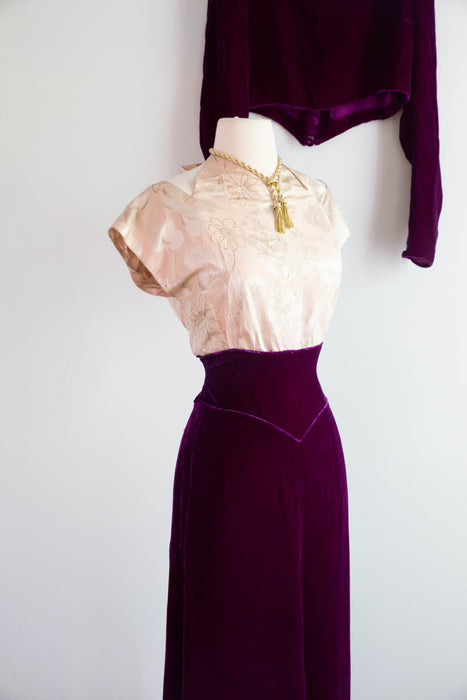 Stunning 1930's Silk Velvet Two Piece Evening Gown With Jacket / M