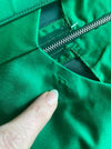 Absolutely gorgeous late 1950's emerald green silk satin by high end designer Mollie Parnis. I would consider this dress to be demi-couture, based on construction and couture features. Featuring an interior bustier bodice with boning for support, a grosgrain waist stay, a full pleated skirt, pleated shoulders and short sleeves. Beautiful construction throughout. The color is more vibrant in person. Zips up the back with original metal zipper. Freshly dry cleaned and ready to wear.