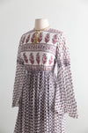 Fabulous 1970's Indian Block Print Cotton Gauze Maxi Dress / SM