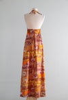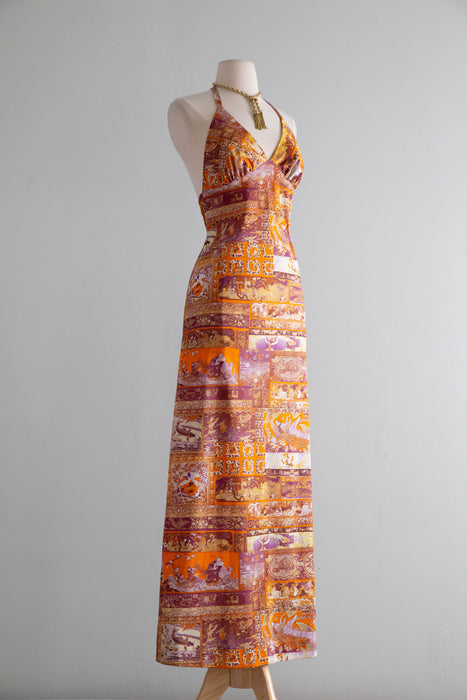 Magical 1970's Japanese Themed Novelty Print Maxi Dress By Anything Goes / Small