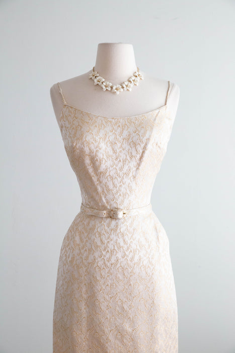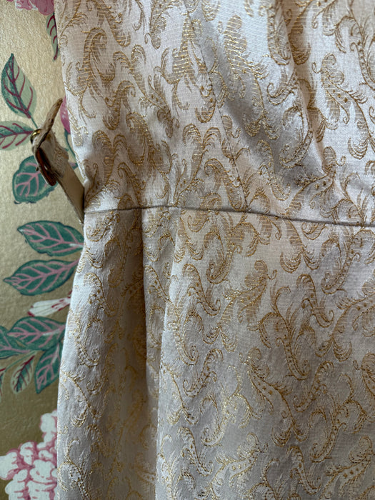 Glamorous 1960's Gold Brocade Cocktail Dress & Matching Jacket / Small