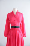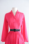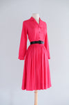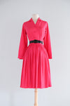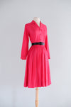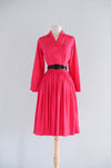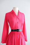 Classic 1950's Cerise Pink Silk Shirtwaist Dress By Norman Wiatt / Small