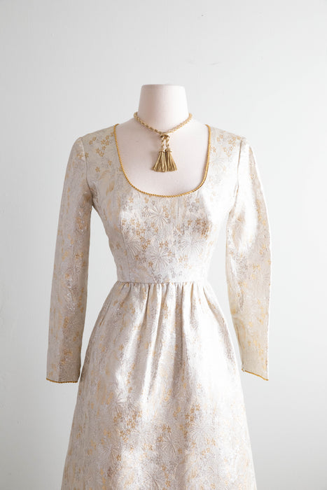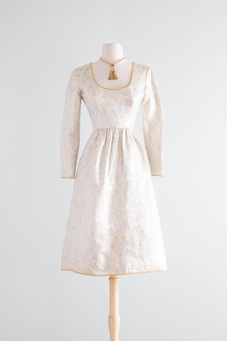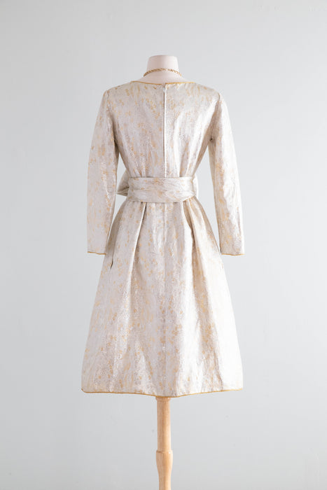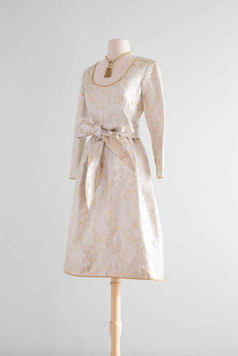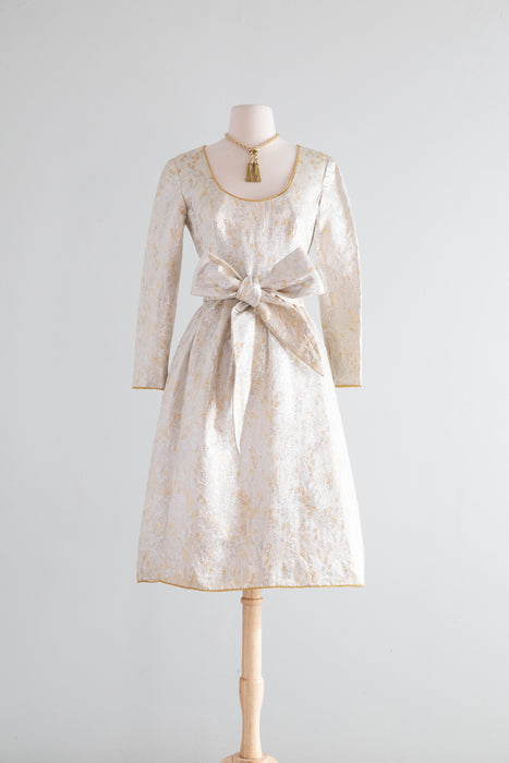 Stunning 1960's Oscar de la Renta Metallic Brocade Cocktail Dress With Sash /
