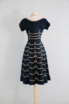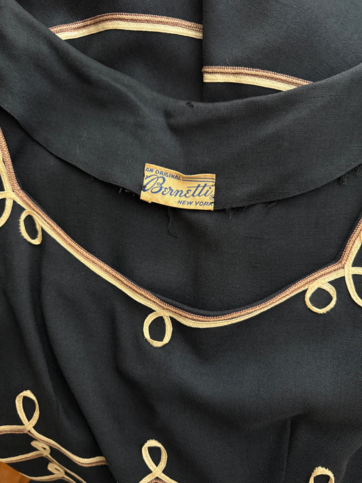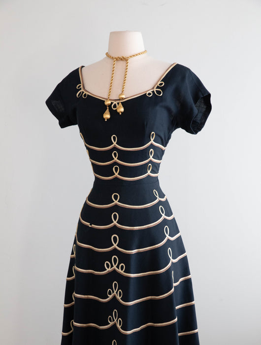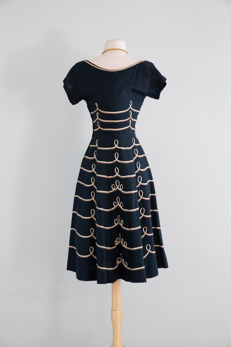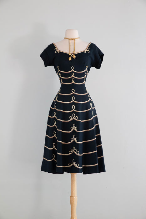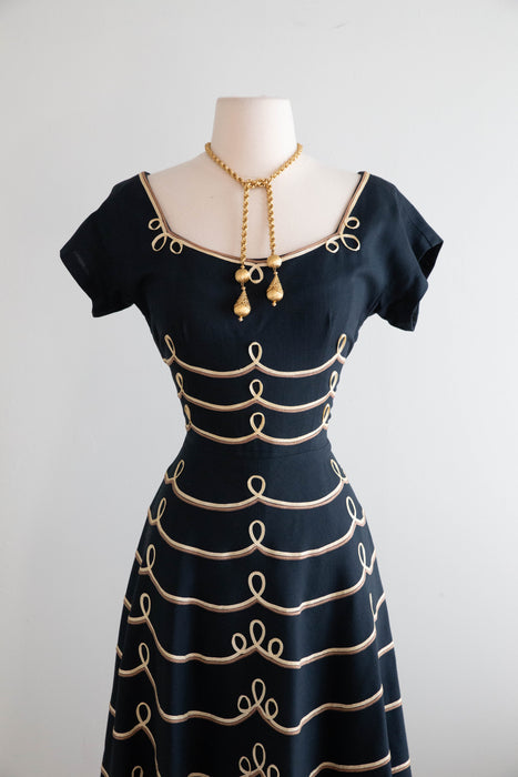 Stunning Early 1950's Bernetti Original Cocktail Dress With Soutache / M