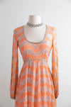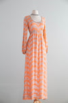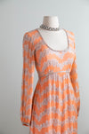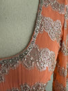 Fabulous 1960's Beaded Chiffon Evening Gown In Pumpkin Bisque / Small