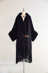 Magnificent 1920s Navy Wool Gabardine Evening Coat with Silk Lining and Fringe Trim / OS