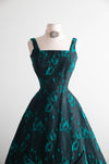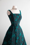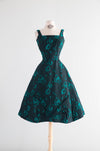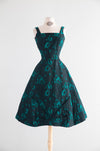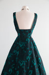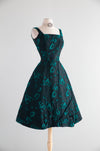Fabulous 1950s Estevez Black & Emerald Textured Brocade Cocktail Dress / S