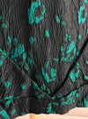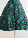 A showstopping jewel of mid-century fashion, this 1950s Estevez cocktail dress embodies the lavish glamour of the holiday season with its sculpted silhouette and richly dimensional fabric. Rendered in a dramatic black crinkled brocade woven with shimmering emerald floral motifs, the dress seems to catch and reflect light with every movement—an ideal choice for winter soirées, candlelit dinners, and festive celebrations.
